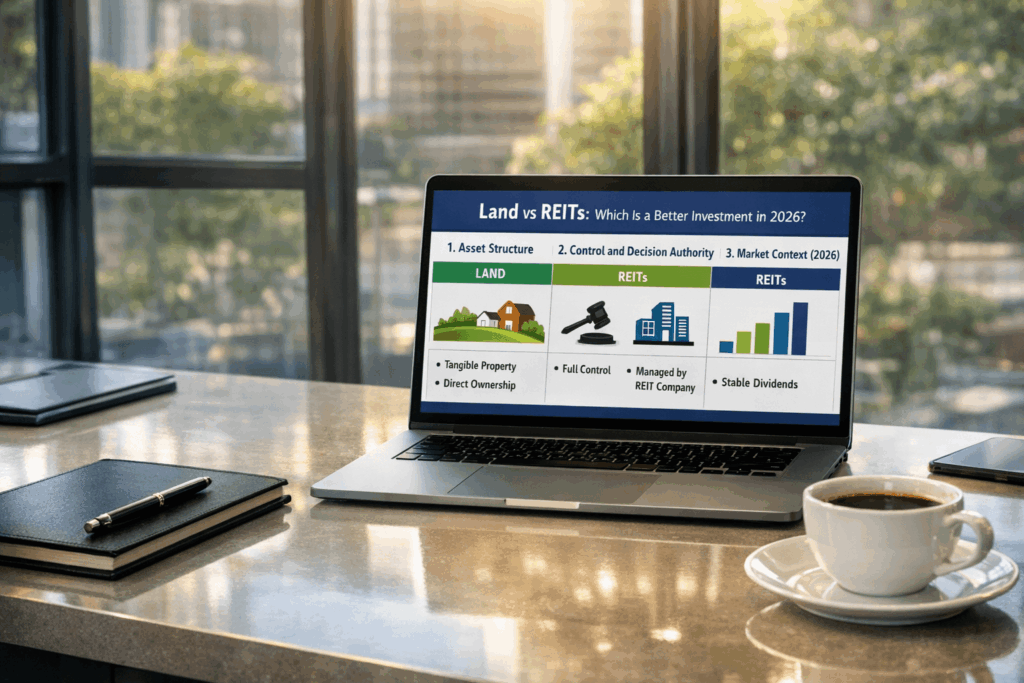 For capital allocators operating through legally formed entities, the distinction between direct land ownership and Real Estate Investment Trusts (REITs) is a structural consideration. Both provide exposure to real estate, but the mechanisms, control frameworks, and risk characteristics differ significantly.
